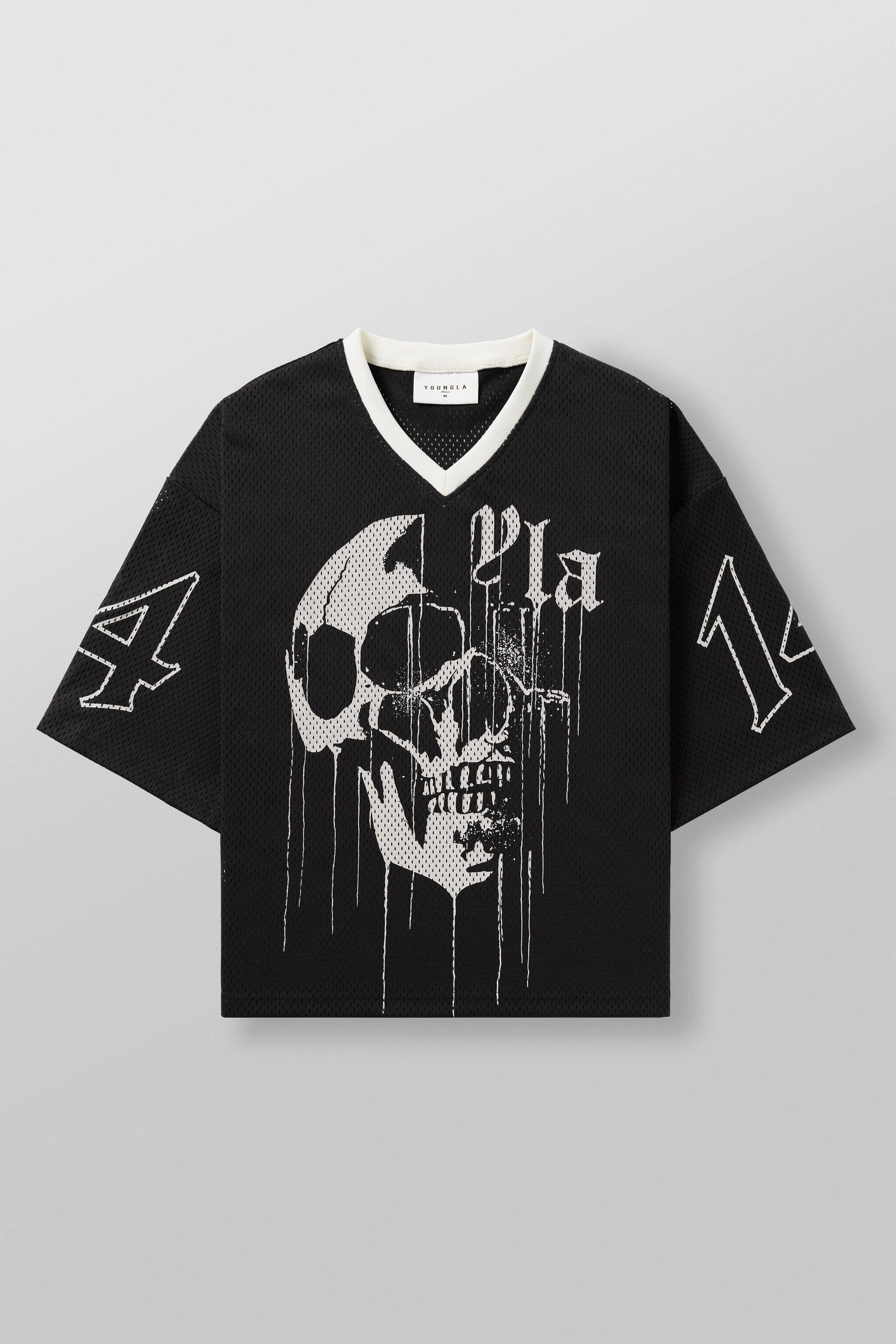 DESIGN: Step up your game with our modern-fit Football Jersey, designed for style and performance. Featuring a striking dripping skull print on the chest, this jersey exudes edgy appeal. The number 14 emblazoned on the sleeves adds a classic sporty touch. Perfect for both on and off the field, this jersey ensures you stay comfortable and fashionable.